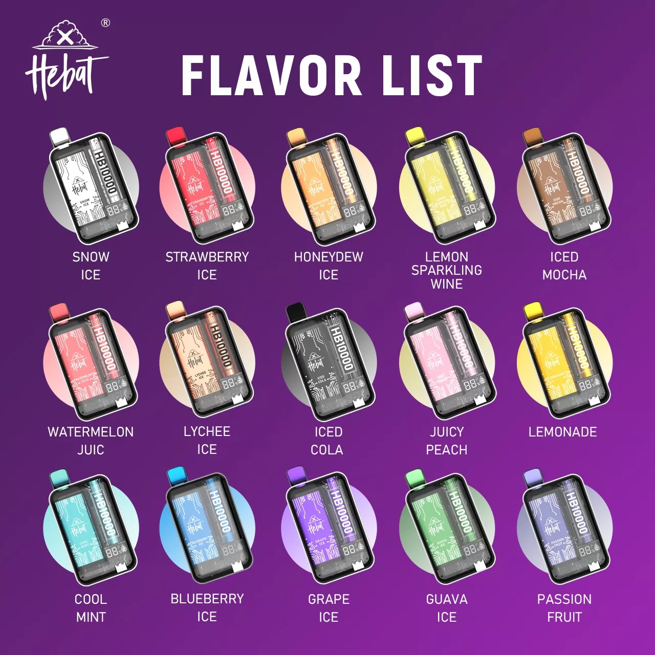 Hebat 主打市場主流熱門風味,涵蓋清爽果香、經典冰感與茶系調性,甜度與涼感比例調校得宜,適合多數消費族群,回購率高。13款可選】 HEBAT喜貝10000口PUFF 一次性拋棄式電子煙| 美滋滋糖果屋|蝦皮電子菸|電子菸推薦,電子菸專賣店口感香又順